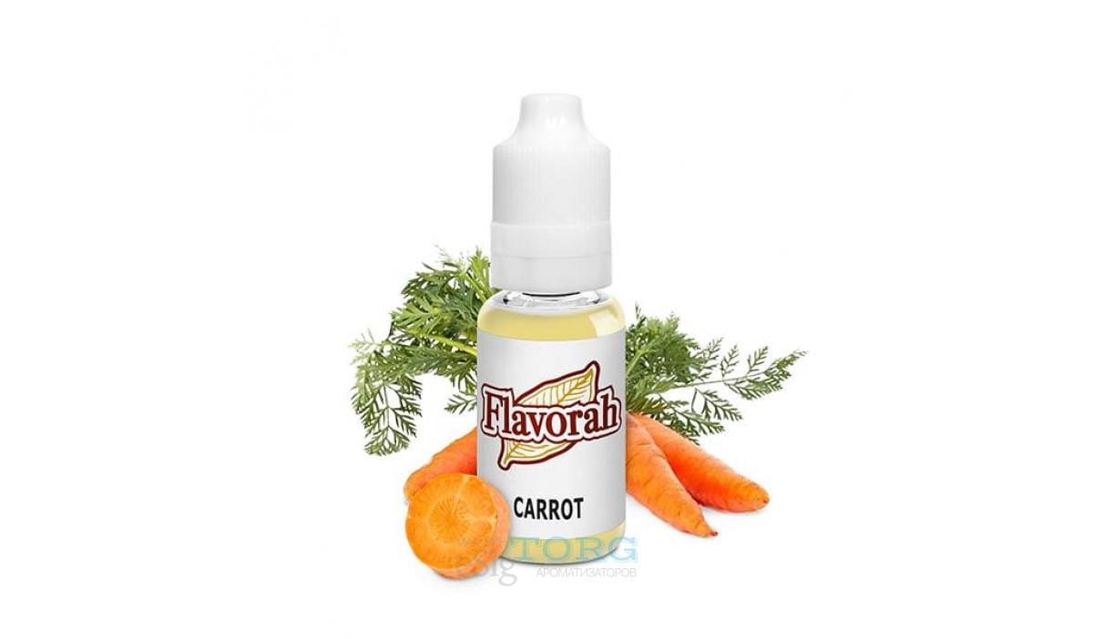 Carrot Flavorah — вкус хрустящей свежей моркови. Ароматизатор удачно имитирует сладкий и сочный морковный вкус, который превосходно сочетается с разными фруктами (например, яблоком). Настоящая морковь прямо из сада , аромат свежей , сырой моркови . На самом деле это не морковь в выпечке , если вы не используете ее в очень низком проценте (~ 0.25%).